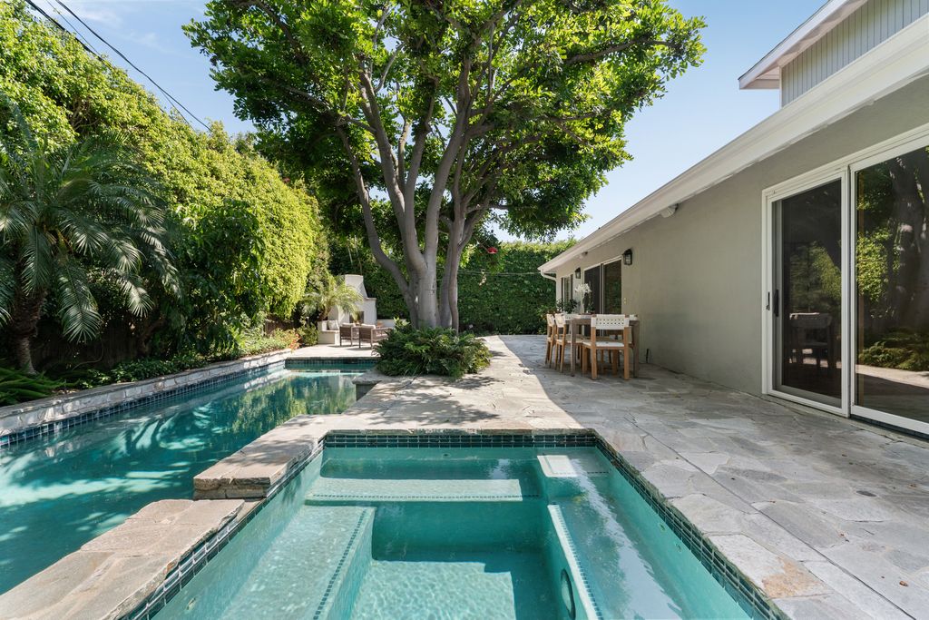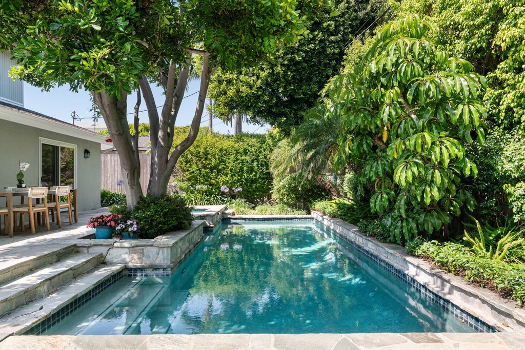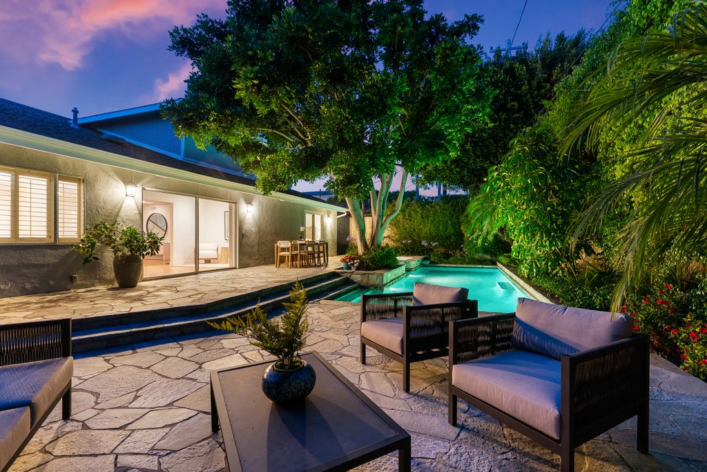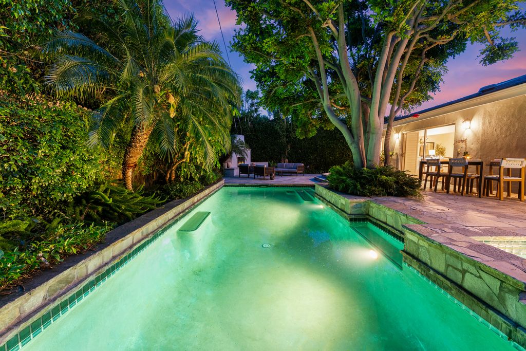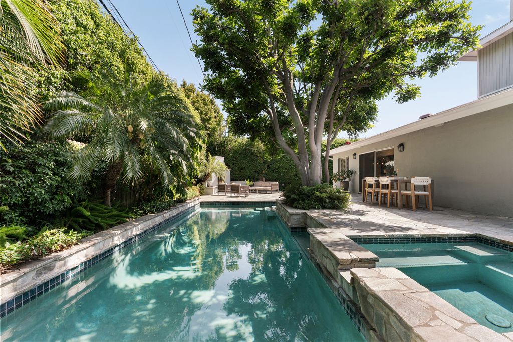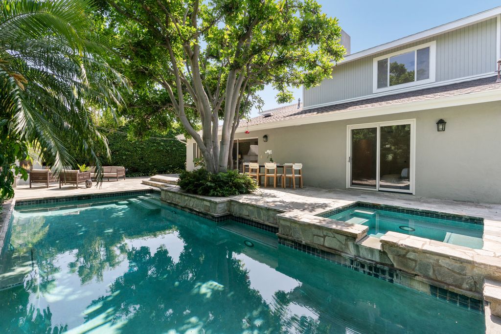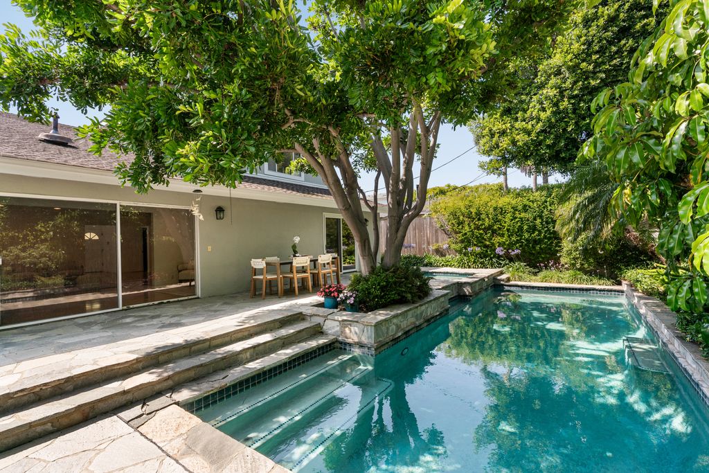 BACK TO BALI! Welcome to Mid-Century Modern charm, refreshed and move-in ready! Perfectly positioned in the heart of Cheviot Hills, this spacious family home features 5-bedrooms, 2.5-baths, with 3,501 sq ft and blends timeless mid-century modern design with effortless indoor-outdoor living. The entire family will enjoy this relaxed, open floor plan leading to a very private tropical backyard retreat featuring a raised lounge area, sparkling pool, spa, and outdoor fireplace, surrounded by mature hedges and trees for year-round entertaining and relaxation.Thoughtfully updated by the current owner, the home retains its original character while offering modern comforts, including a sunlit galley kitchen with breakfast nook, a formal living and dining room, cozy sitting area, brick fireplace, and hardwood floors throughout. The primary suite boasts a fully remodeled bathroom and walk-in closet, while a versatile home office sits conveniently on the entry level. Upstairs, you'll find three spacious guest bedrooms, a shared double bathroom, a playful kid's loft , nd ample storage and attic storage offering the perfect layout for a growing family. Located just minutes from Century City, Beverly Hills, and the best of LA's Westside, this home is a rare opportunity to enjoy classic architecture, a resort-style yard, and an unbeatable neighborhood HOA with APS security patrol and upcoming license plate reader cameras.